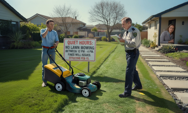 The noise began before the sun was even up. A mower coughing to life at 7:30 a.m., a leaf blower