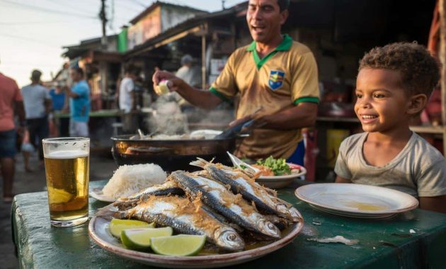The smell of frying garlic drifts over the plastic tables at a tiny bar in the outskirts of Recife. A